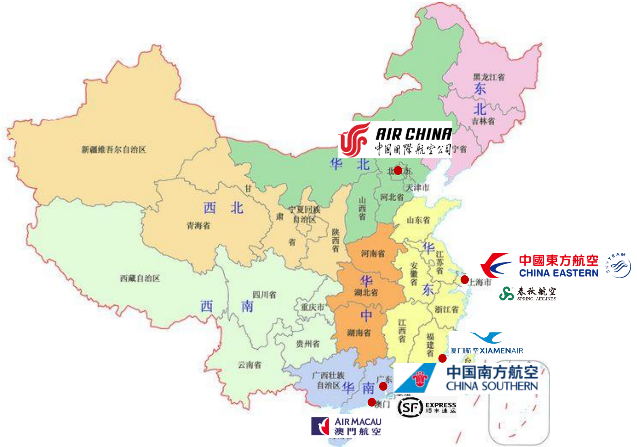 Airlines:Air China,China Eastern Air Holding Company,China Southern Airlines,Xiamen Airlines,Spring Airlines,Air Macau.