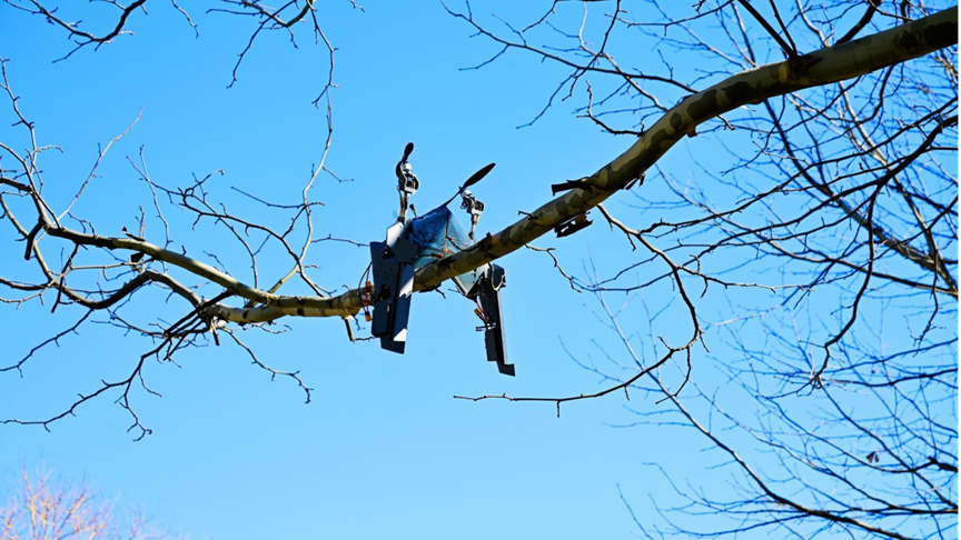 该项目灵感源于“平衡鸟”玩具的稳定性原理,旨在攻克传统无人机依赖起落架与主动抓取机构进行起降和停靠的行业难题。研究团队创造性地设计了一套斜铰链式可折叠机翼系统,通过改变机翼构型动态调整飞行器重心,使其能在无需动力消耗的情况下,稳定栖停于树枝、电缆等复杂结构。同时,团队自主研发了基于桨盘平面的姿态控制算法,成功实现了无人机在无起落架条件下的平地垂直起降,以及旋翼模式与固定翼模式间2秒内的快速、平稳模态转换。经严格测试,该无人机可在6米/秒风速下保持稳定栖停,展现出优越的环境适应性。相关创新技术已成功申请国家实用新型专利,初步形成了具有自主知识产权的技术体系。
