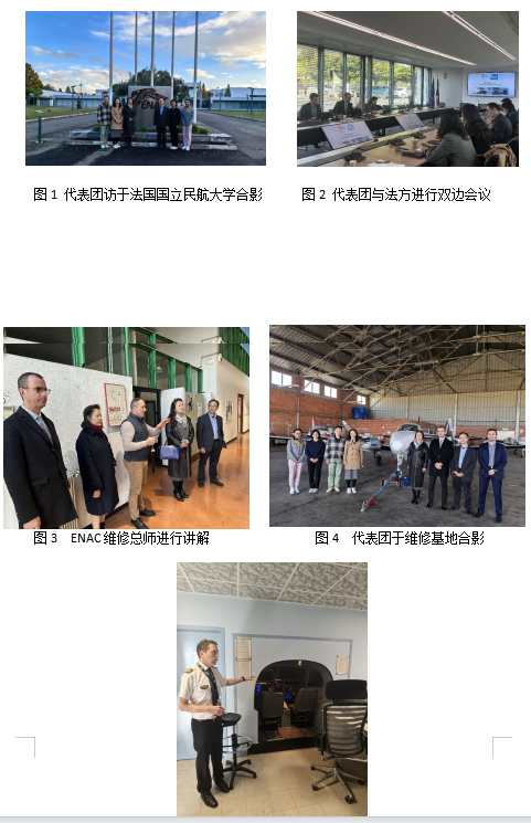 为推动深化北航与法国国立民航大学(ENAC)的合作,培养国际化高层次、高水平飞行人才,10月31日-11月1日,飞行学院党委书记朱颖率团前往法国国立民航大学进行工作访问,深入课堂、训练机场、维修基地等走访调研,与法方相关领导及工作人员深入交流探讨。研究生院副院长蔡军,飞行学院副院长兰巍及相关专任教师随行访问。